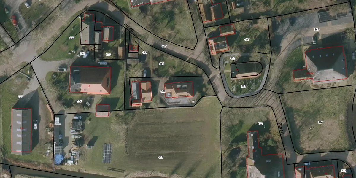 Het perceel waarop Buren 20 staat heeft een oppervlakte van 740 m². Dit is een groot perceel. De perceeloppervlakte wordt geregistreerd door het Kadaster. Gedetailleerde informatie over de maten van dit perceel kunt u vinden in het rapport Kadastrale kaart met maatvoering van Buren 20.