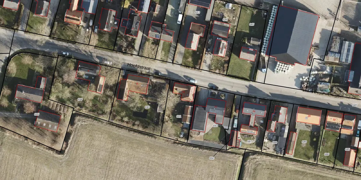 Gebruik de zoekbalk of klik op een perceel voor informatie over de adressen binnen dit perceel.