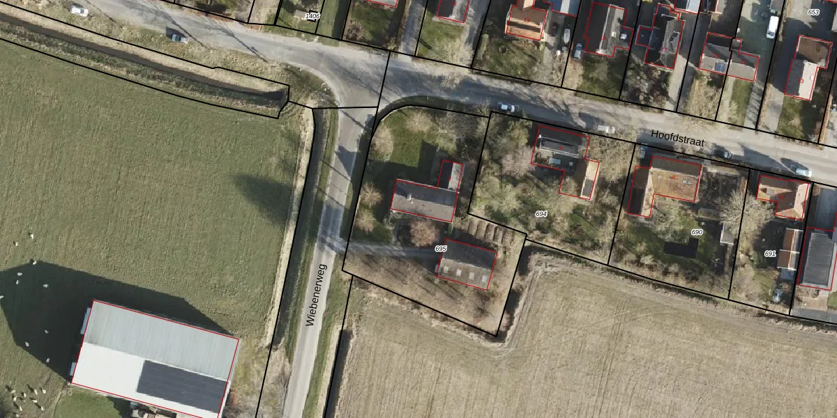 Gebruik de zoekbalk of klik op een perceel voor informatie over de adressen binnen dit perceel.