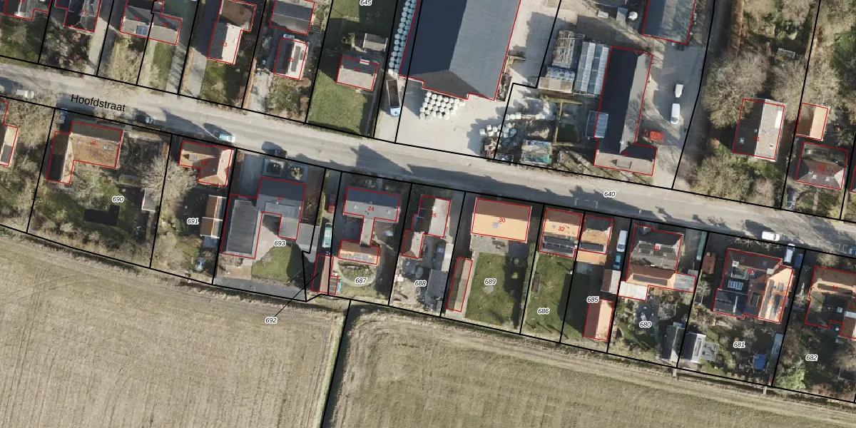 Het perceel waarop Hoofdstraat 26 staat heeft een oppervlakte van 371 m². Dit is een groot perceel. De perceeloppervlakte wordt geregistreerd door het Kadaster. Gedetailleerde informatie over de maten van dit perceel kunt u vinden in het rapport Kadastrale kaart met maatvoering van Hoofdstraat 26.