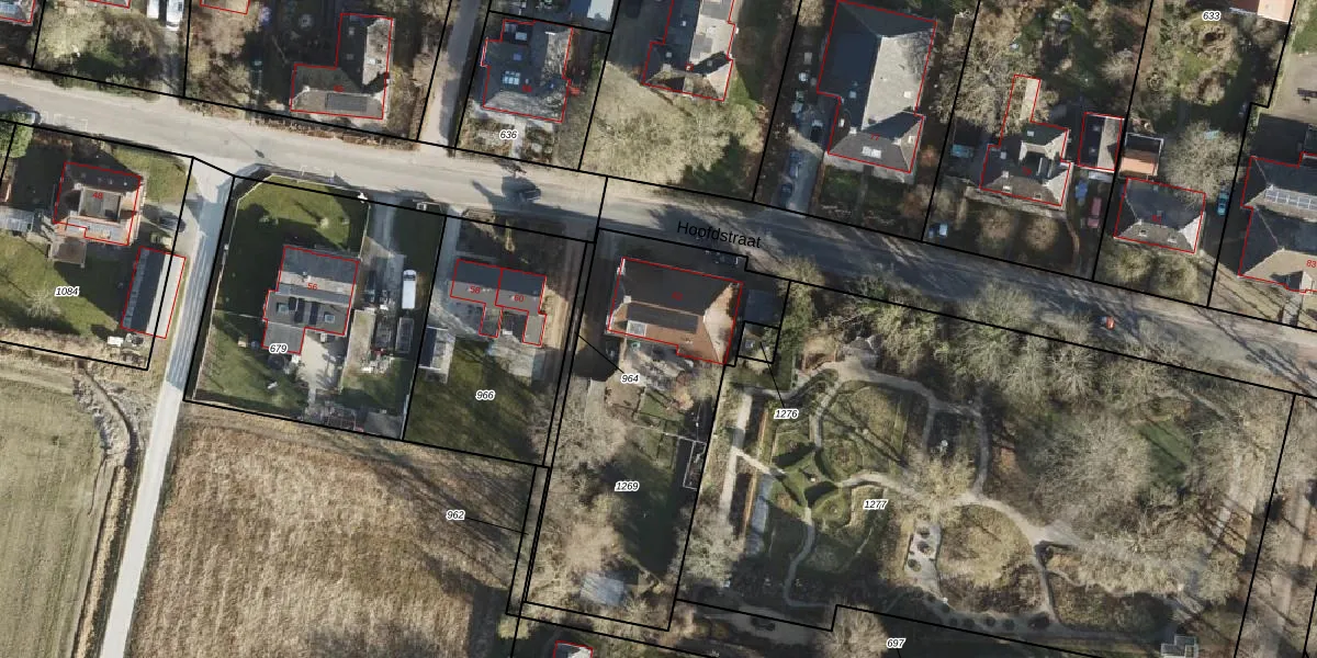 Het perceel waarop Hoofdstraat 62 staat heeft een oppervlakte van 1375 m². Dit is een zeer groot perceel. De perceeloppervlakte wordt geregistreerd door het Kadaster. Gedetailleerde informatie over de maten van dit perceel kunt u vinden in het rapport Kadastrale kaart met maatvoering van Hoofdstraat 62.