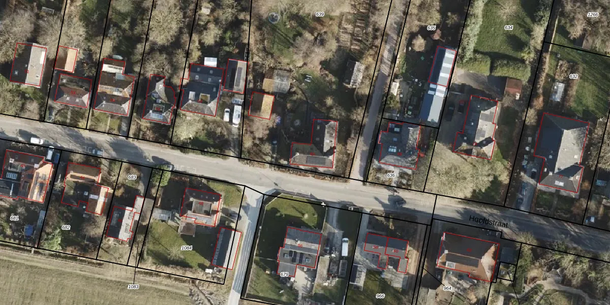 Het perceel waarop Hoofdstraat 65 staat heeft een oppervlakte van 2845 m². Dit is een zeer groot perceel. De perceeloppervlakte wordt geregistreerd door het Kadaster. Gedetailleerde informatie over de maten van dit perceel kunt u vinden in het rapport Kadastrale kaart met maatvoering van Hoofdstraat 65.
