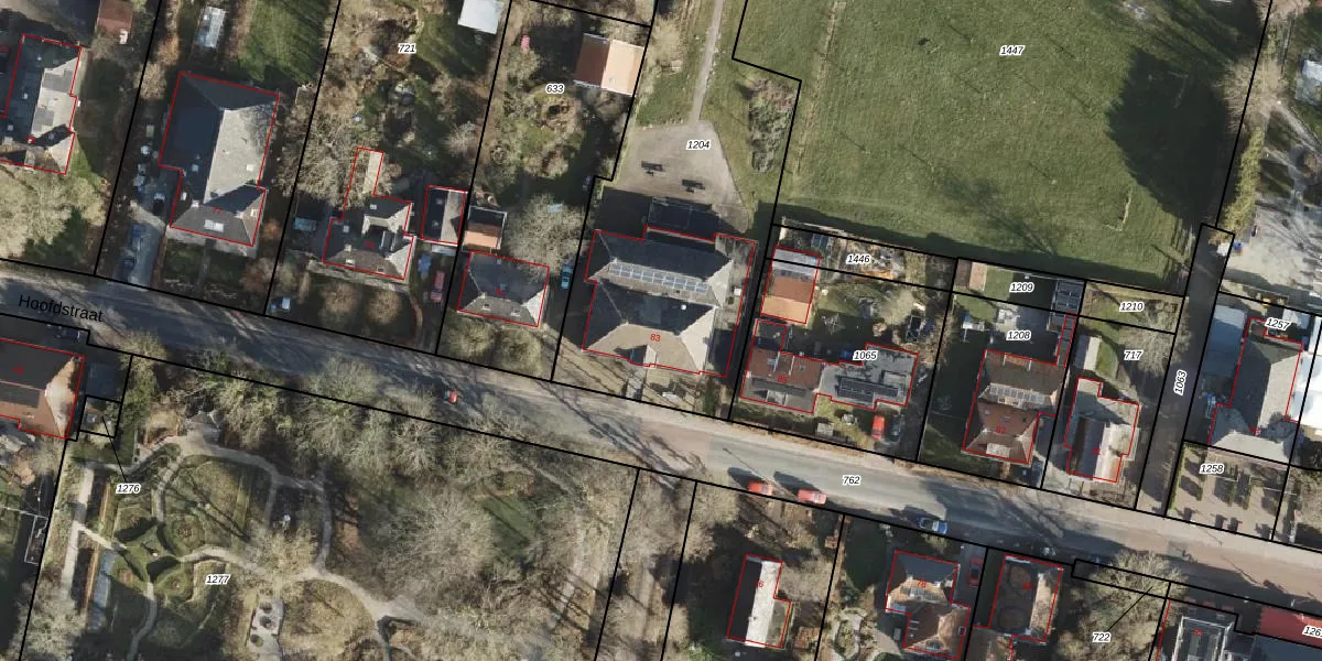 Het perceel waarop Hoofdstraat 83 staat heeft een oppervlakte van 1810 m². Dit is een zeer groot perceel. De perceeloppervlakte wordt geregistreerd door het Kadaster. Gedetailleerde informatie over de maten van dit perceel kunt u vinden in het rapport Kadastrale kaart met maatvoering van Hoofdstraat 83.