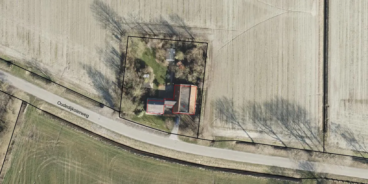 Het perceel waarop Oudedijksterweg 8 staat heeft een oppervlakte van 2121 m². Dit is een zeer groot perceel. De perceeloppervlakte wordt geregistreerd door het Kadaster. Gedetailleerde informatie over de maten van dit perceel kunt u vinden in het rapport Kadastrale kaart met maatvoering van Oudedijksterweg 8.