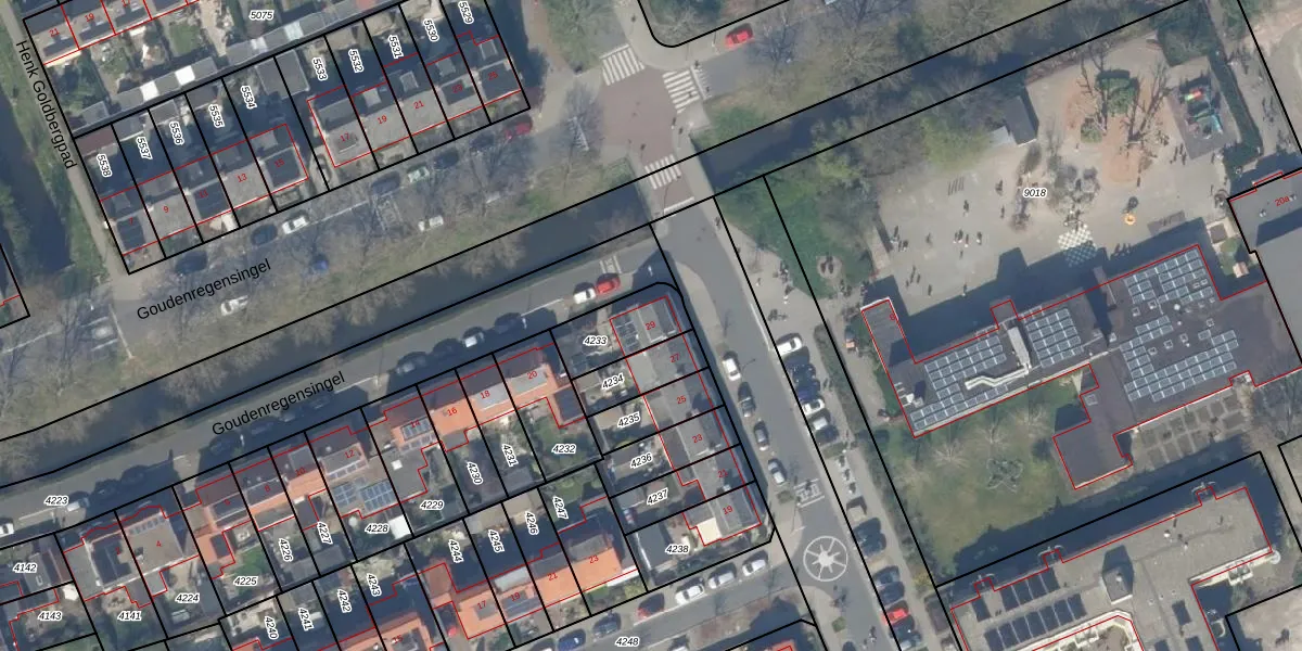 Gebruik de zoekbalk of klik op een perceel voor informatie over de adressen binnen dit perceel.