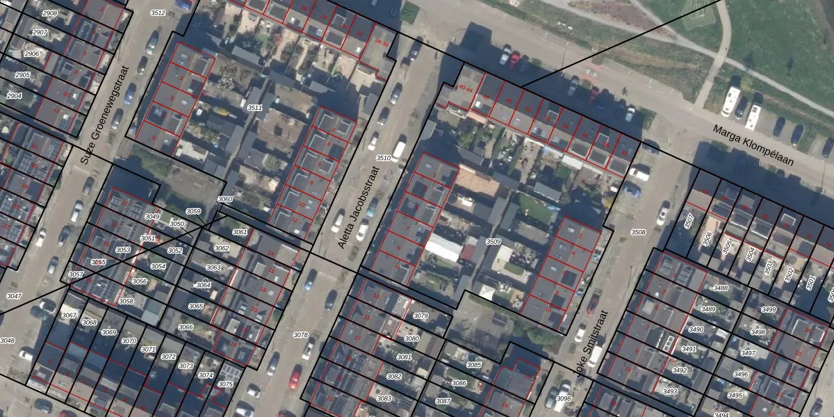 Het perceel waarop Aletta Jacobsstraat 5 staat heeft een oppervlakte van 2620 m². Dit is een zeer groot perceel. De perceeloppervlakte wordt geregistreerd door het Kadaster. Gedetailleerde informatie over de maten van dit perceel kunt u vinden in het rapport Kadastrale kaart met maatvoering van Aletta Jacobsstraat 5.