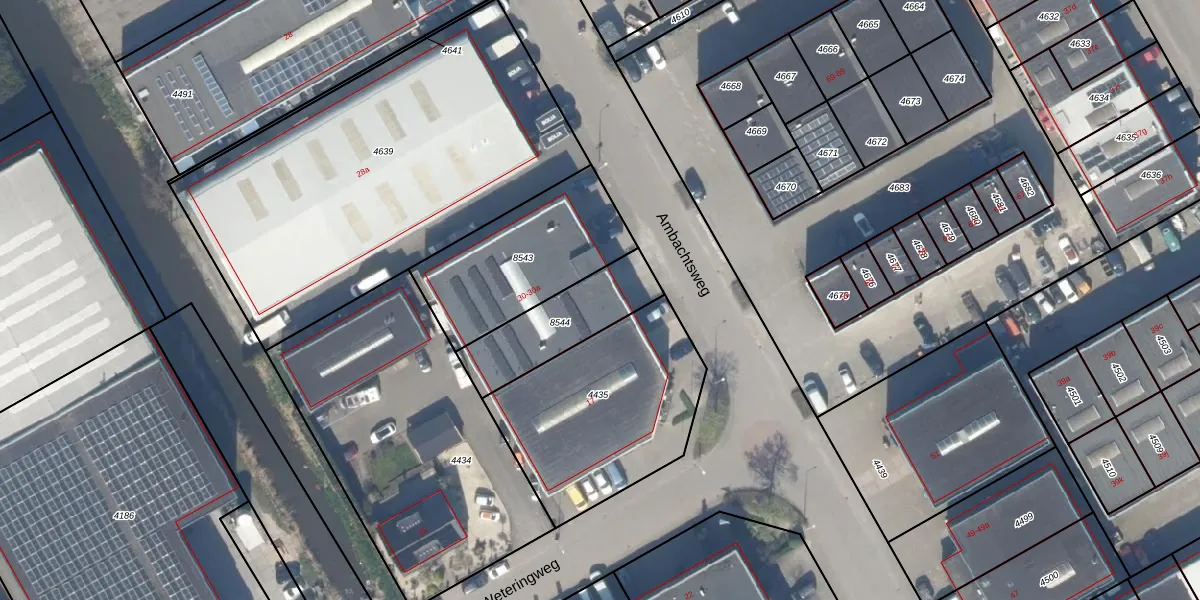 Het perceel waarop Ambachtsweg 30-a staat heeft een oppervlakte van 313 m². Dit is een groot perceel. De perceeloppervlakte wordt geregistreerd door het Kadaster. Gedetailleerde informatie over de maten van dit perceel kunt u vinden in het rapport Kadastrale kaart met maatvoering van Ambachtsweg 30-a.