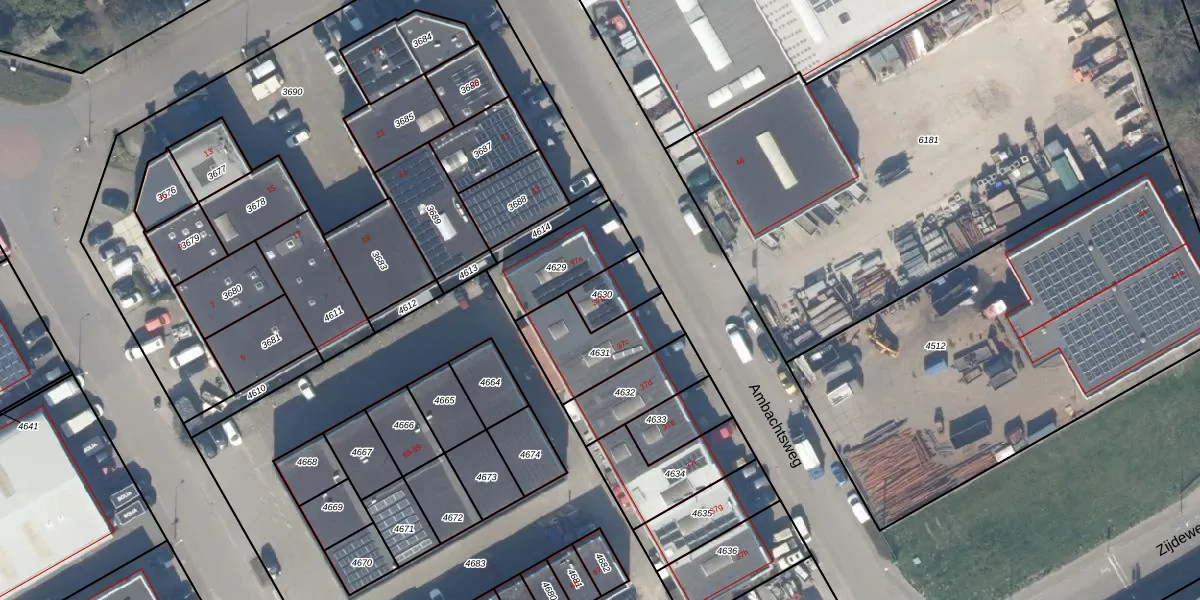 Ambachtsweg 37-b is gelegen op kadastraal perceel PAK00B4630. Deze kadastrale aanduiding is uniek en wordt gebruikt door het Kadaster om eigendomsrechten en andere zakelijke rechten vast te leggen. Het perceel maakt onderdeel uit van de kadastrale gemeente Pijnacker.