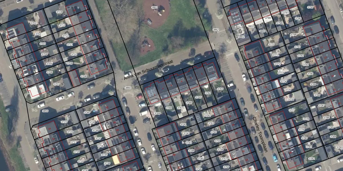 Anna van Schuurmanstraat 5 is gelegen op kadastraal perceel PAK00B3767. Deze kadastrale aanduiding is uniek en wordt gebruikt door het Kadaster om eigendomsrechten en andere zakelijke rechten vast te leggen. Het perceel maakt onderdeel uit van de kadastrale gemeente Pijnacker.