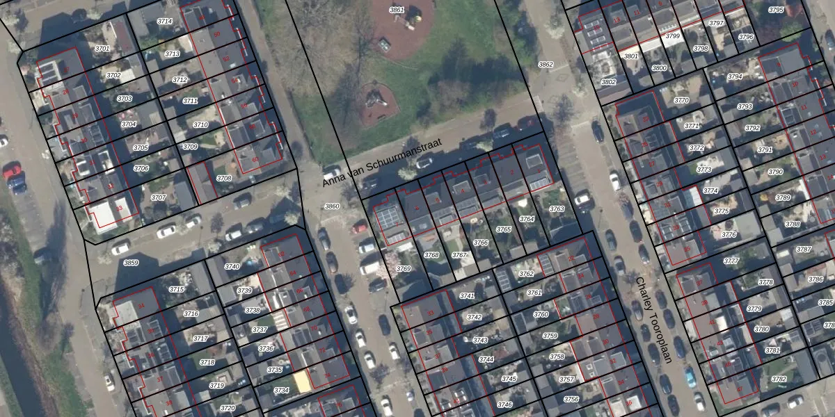 Anna van Schuurmanstraat 6 is gelegen op kadastraal perceel PAK00B3768. Deze kadastrale aanduiding is uniek en wordt gebruikt door het Kadaster om eigendomsrechten en andere zakelijke rechten vast te leggen. Het perceel maakt onderdeel uit van de kadastrale gemeente Pijnacker.