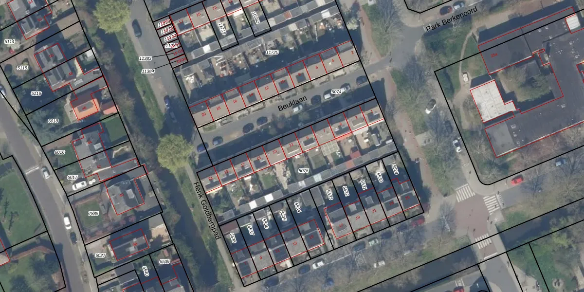 Beuklaan 11 is gelegen op kadastraal perceel PAK00C5075. Deze kadastrale aanduiding is uniek en wordt gebruikt door het Kadaster om eigendomsrechten en andere zakelijke rechten vast te leggen. Het perceel maakt onderdeel uit van de kadastrale gemeente Pijnacker.