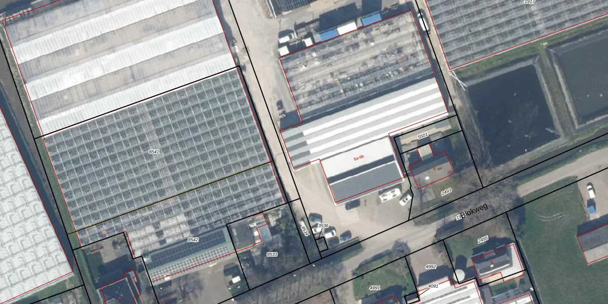Blokweg 6-b is gelegen op kadastraal perceel PAK00B6041. Deze kadastrale aanduiding is uniek en wordt gebruikt door het Kadaster om eigendomsrechten en andere zakelijke rechten vast te leggen. Het perceel maakt onderdeel uit van de kadastrale gemeente Pijnacker.