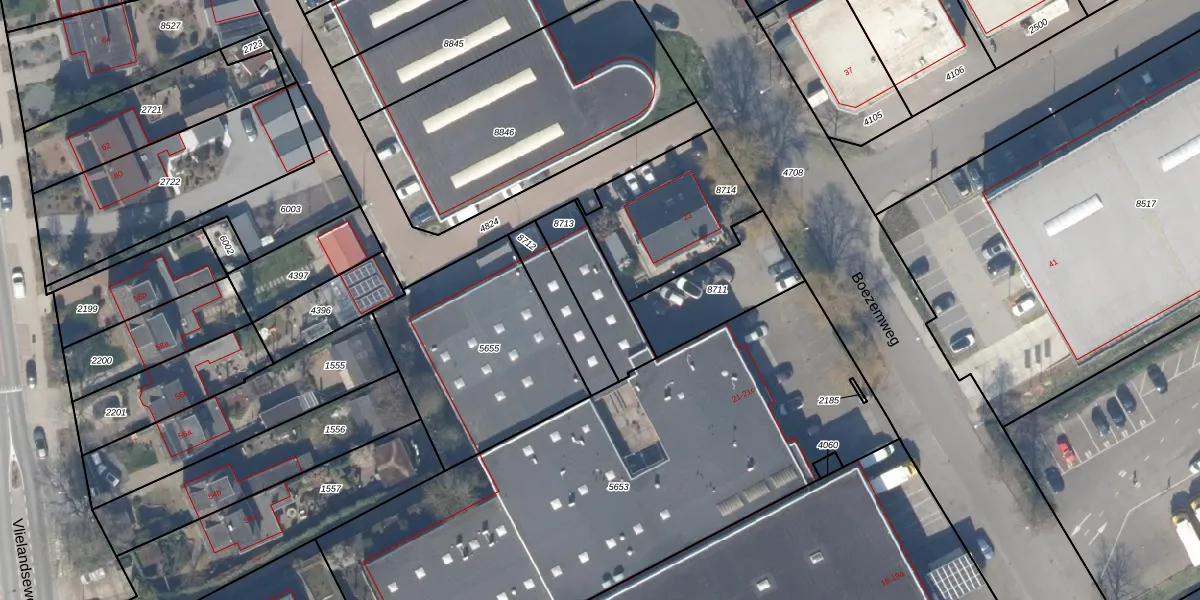 Gebruik de zoekbalk of klik op een perceel voor informatie over de adressen binnen dit perceel.