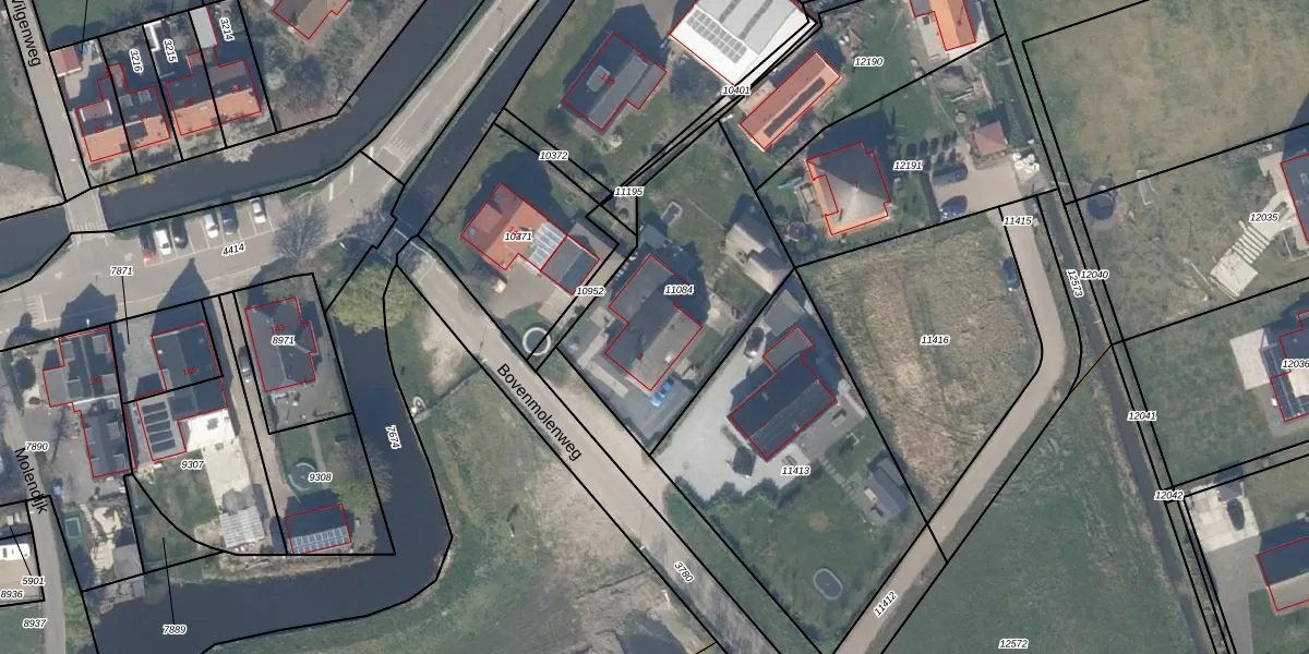 Het perceel waarop Bovenmolenweg 1 staat heeft een oppervlakte van 904 m². Dit is een groot perceel. De perceeloppervlakte wordt geregistreerd door het Kadaster. Gedetailleerde informatie over de maten van dit perceel kunt u vinden in het rapport Kadastrale kaart met maatvoering van Bovenmolenweg 1.