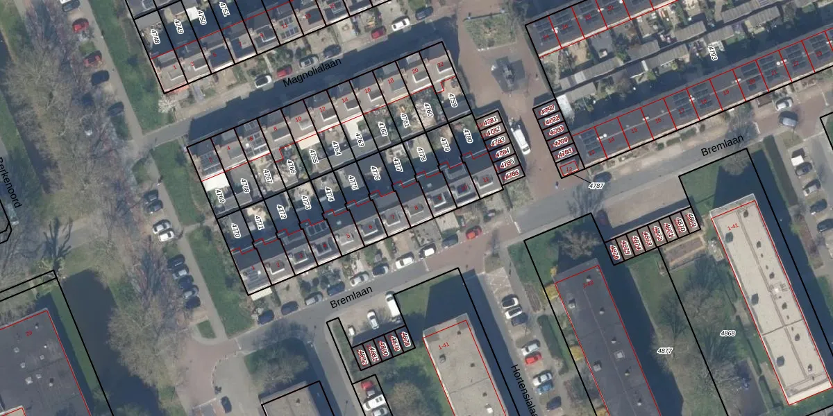 Gebruik de zoekbalk of klik op een perceel voor informatie over de adressen binnen dit perceel.