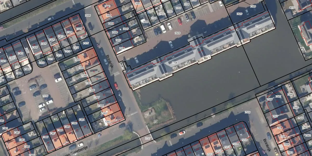 Brinkrijk 13 is gelegen op kadastraal perceel PAK00B7708. Deze kadastrale aanduiding is uniek en wordt gebruikt door het Kadaster om eigendomsrechten en andere zakelijke rechten vast te leggen. Het perceel maakt onderdeel uit van de kadastrale gemeente Pijnacker.