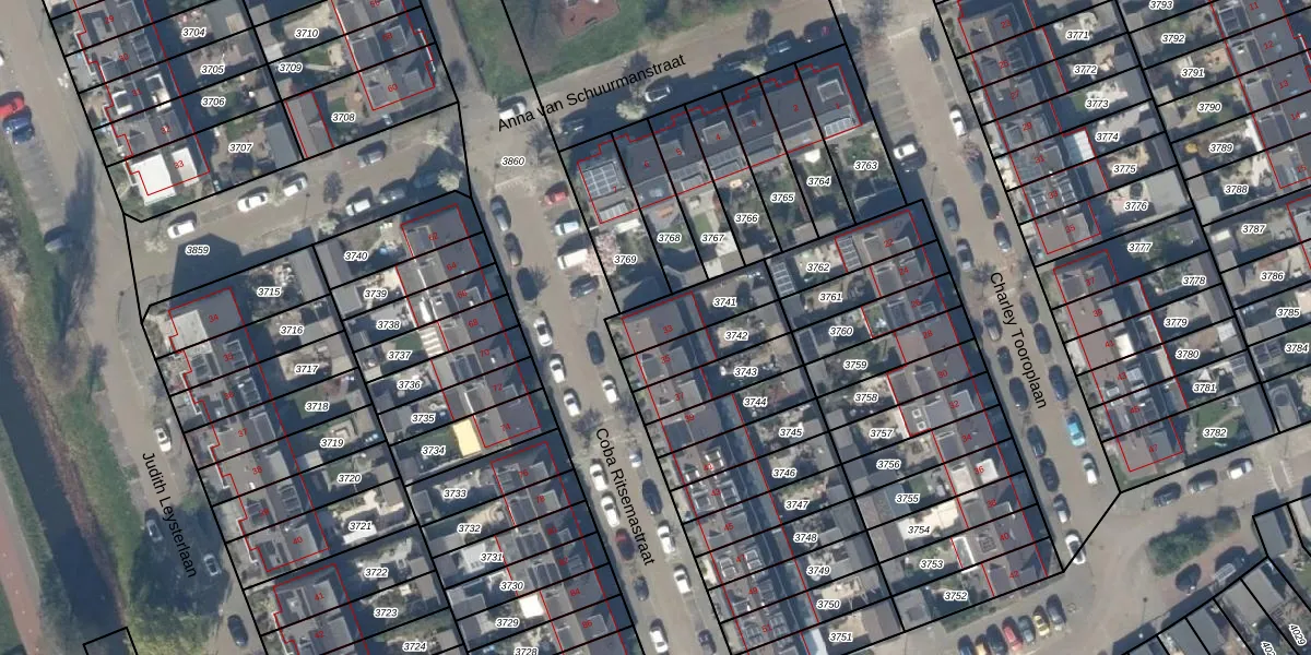 Coba Ritsemastraat 33 is gelegen op kadastraal perceel PAK00B3741. Deze kadastrale aanduiding is uniek en wordt gebruikt door het Kadaster om eigendomsrechten en andere zakelijke rechten vast te leggen. Het perceel maakt onderdeel uit van de kadastrale gemeente Pijnacker.
