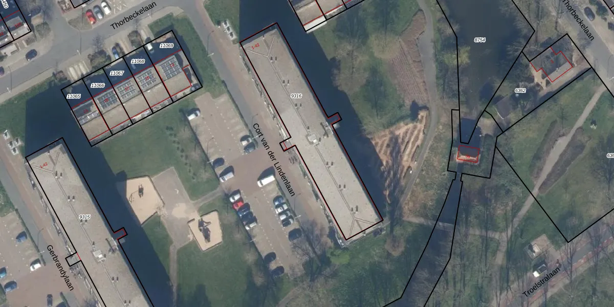 Het perceel waarop Cort van der Lindenlaan 42-G9 staat heeft een oppervlakte van 1020 m². Dit is een zeer groot perceel. De perceeloppervlakte wordt geregistreerd door het Kadaster. Gedetailleerde informatie over de maten van dit perceel kunt u vinden in het rapport Kadastrale kaart met maatvoering van Cort van der Lindenlaan 42-G9.