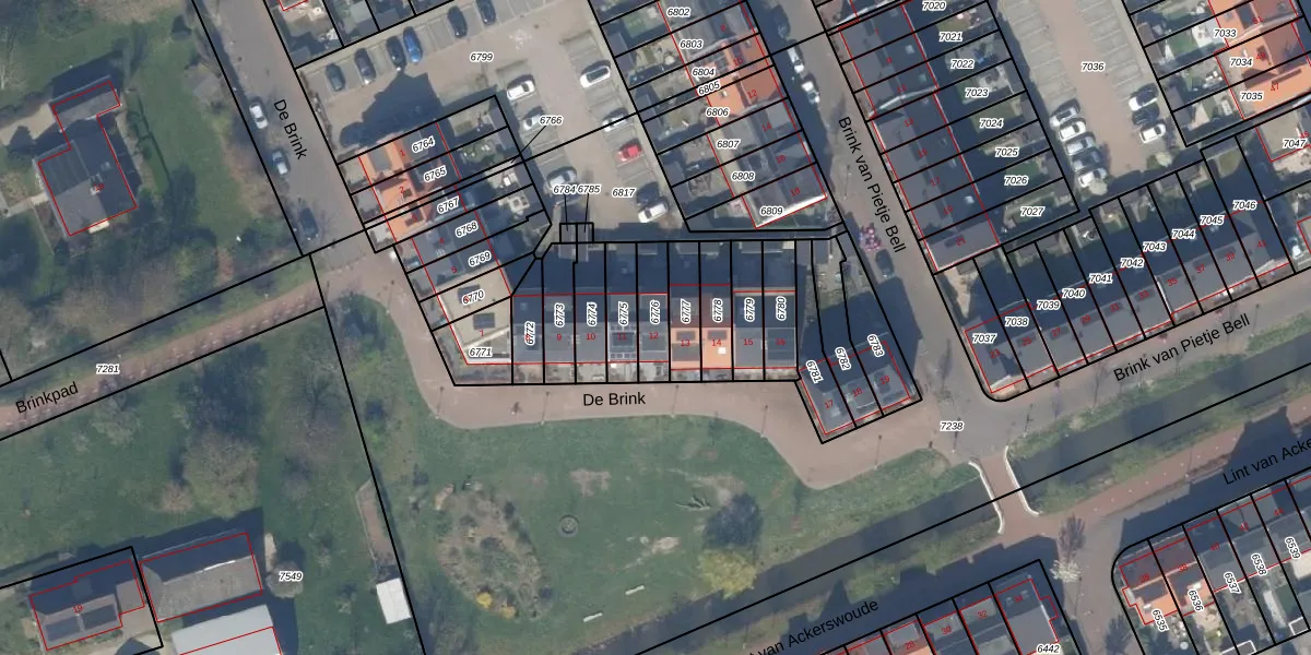 De Brink 12 is gelegen op kadastraal perceel PAK00B6776. Deze kadastrale aanduiding is uniek en wordt gebruikt door het Kadaster om eigendomsrechten en andere zakelijke rechten vast te leggen. Het perceel maakt onderdeel uit van de kadastrale gemeente Pijnacker.