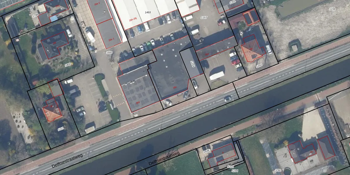 Delftsestraatweg 26-c is gelegen op kadastraal perceel PAK00F1493. Deze kadastrale aanduiding is uniek en wordt gebruikt door het Kadaster om eigendomsrechten en andere zakelijke rechten vast te leggen. Het perceel maakt onderdeel uit van de kadastrale gemeente Pijnacker.