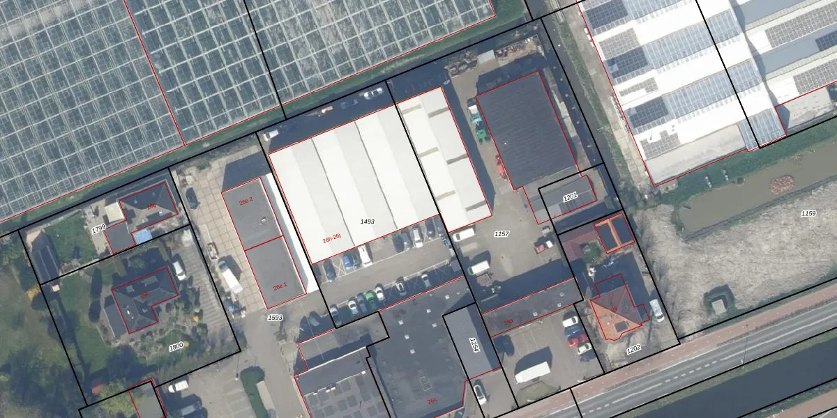 Delftsestraatweg 26-j is gelegen op kadastraal perceel PAK00F1493. Deze kadastrale aanduiding is uniek en wordt gebruikt door het Kadaster om eigendomsrechten en andere zakelijke rechten vast te leggen. Het perceel maakt onderdeel uit van de kadastrale gemeente Pijnacker.