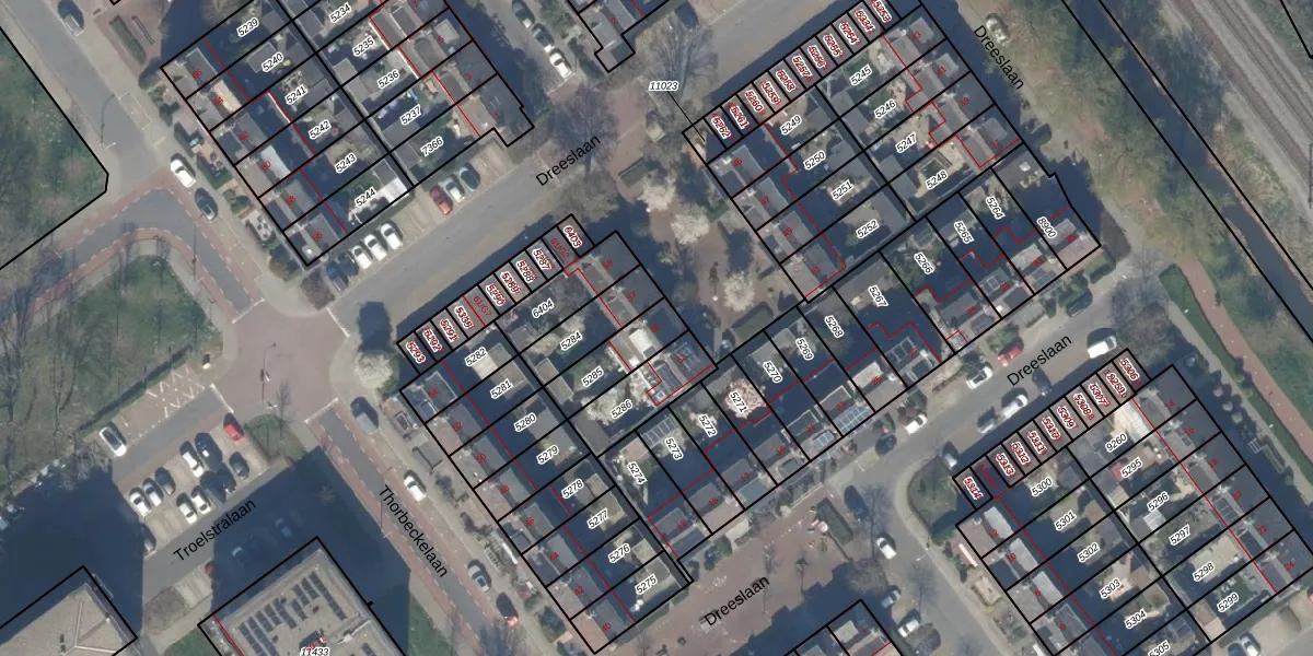 Het perceel waarop Dreeslaan 55 staat heeft een oppervlakte van 143 m². Dit is een middelgroot perceel. De perceeloppervlakte wordt geregistreerd door het Kadaster. Gedetailleerde informatie over de maten van dit perceel kunt u vinden in het rapport Kadastrale kaart met maatvoering van Dreeslaan 55.