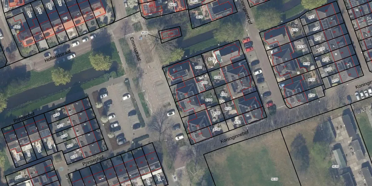 Gebruik de zoekbalk of klik op een perceel voor informatie over de adressen binnen dit perceel.