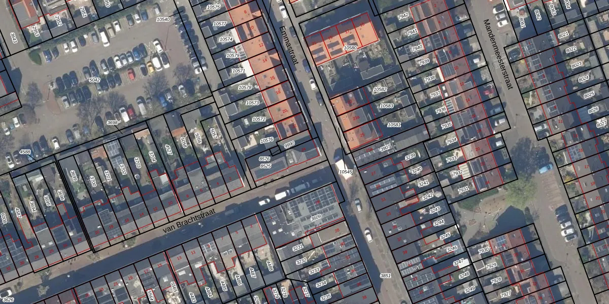 Gebruik de zoekbalk of klik op een perceel voor informatie over de adressen binnen dit perceel.