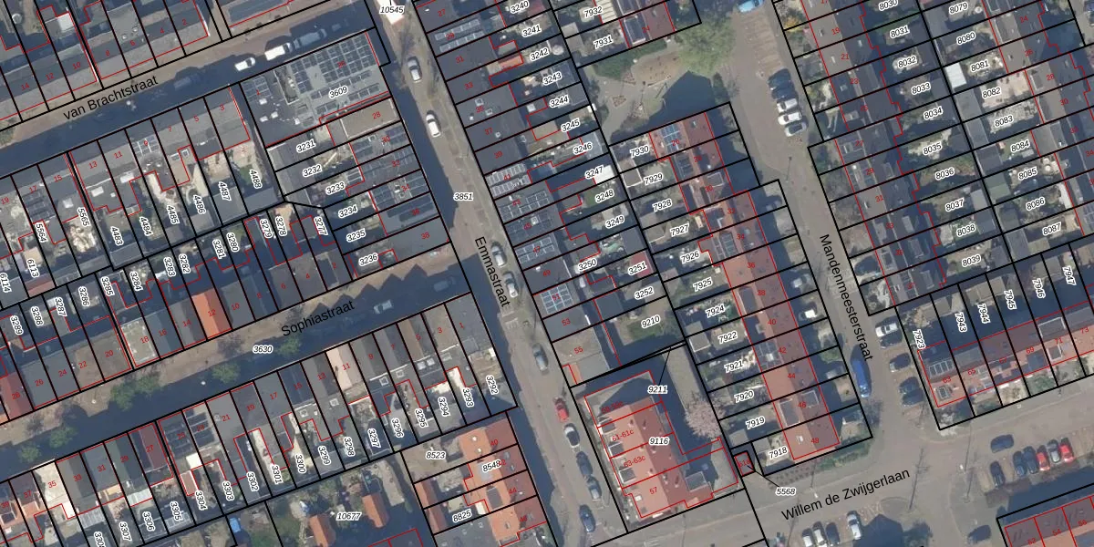 Gebruik de zoekbalk of klik op een perceel voor informatie over de adressen binnen dit perceel.