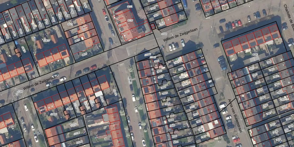 Gebruik de zoekbalk of klik op een perceel voor informatie over de adressen binnen dit perceel.