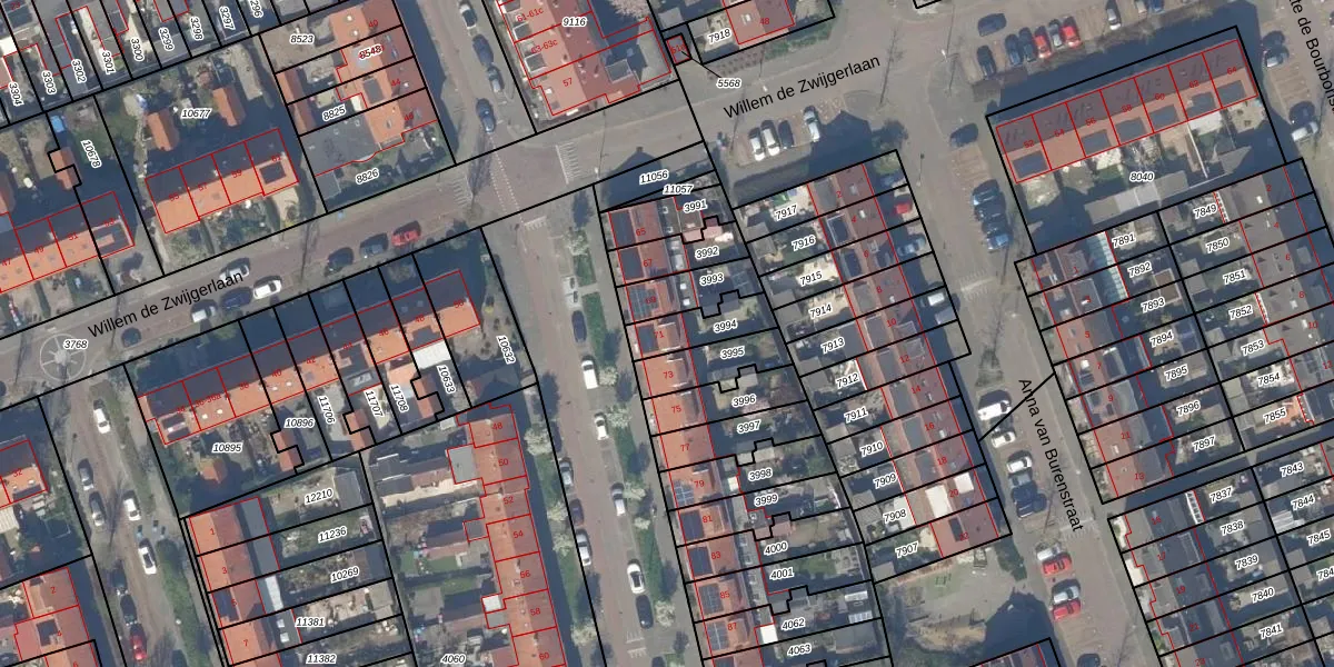 Gebruik de zoekbalk of klik op een perceel voor informatie over de adressen binnen dit perceel.