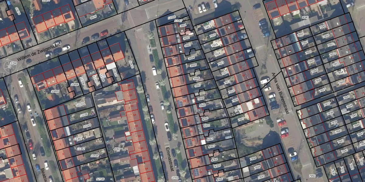 Gebruik de zoekbalk of klik op een perceel voor informatie over de adressen binnen dit perceel.
