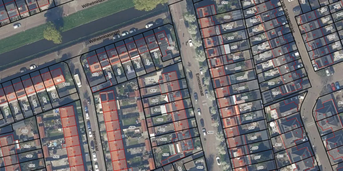 Het perceel waarop Emmastraat 78 staat heeft een oppervlakte van 163 m². Dit is een middelgroot perceel. De perceeloppervlakte wordt geregistreerd door het Kadaster. Gedetailleerde informatie over de maten van dit perceel kunt u vinden in het rapport Kadastrale kaart met maatvoering van Emmastraat 78.