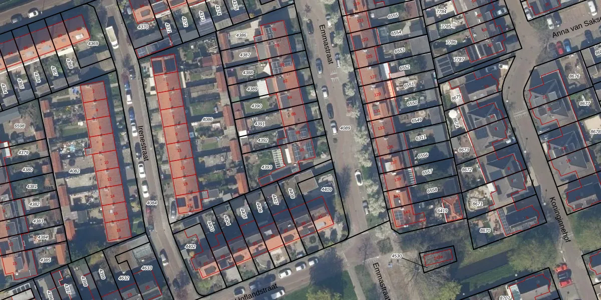 Het perceel waarop Emmastraat 90 staat heeft een oppervlakte van 295 m². Dit is een middelgroot perceel. De perceeloppervlakte wordt geregistreerd door het Kadaster. Gedetailleerde informatie over de maten van dit perceel kunt u vinden in het rapport Kadastrale kaart met maatvoering van Emmastraat 90.