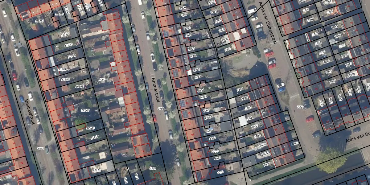 Gebruik de zoekbalk of klik op een perceel voor informatie over de adressen binnen dit perceel.
