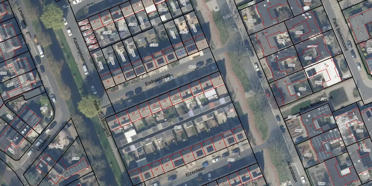 Esdoornlaan 7 is gelegen op kadastraal perceel PAK00C5071. Deze kadastrale aanduiding is uniek en wordt gebruikt door het Kadaster om eigendomsrechten en andere zakelijke rechten vast te leggen. Het perceel maakt onderdeel uit van de kadastrale gemeente Pijnacker.