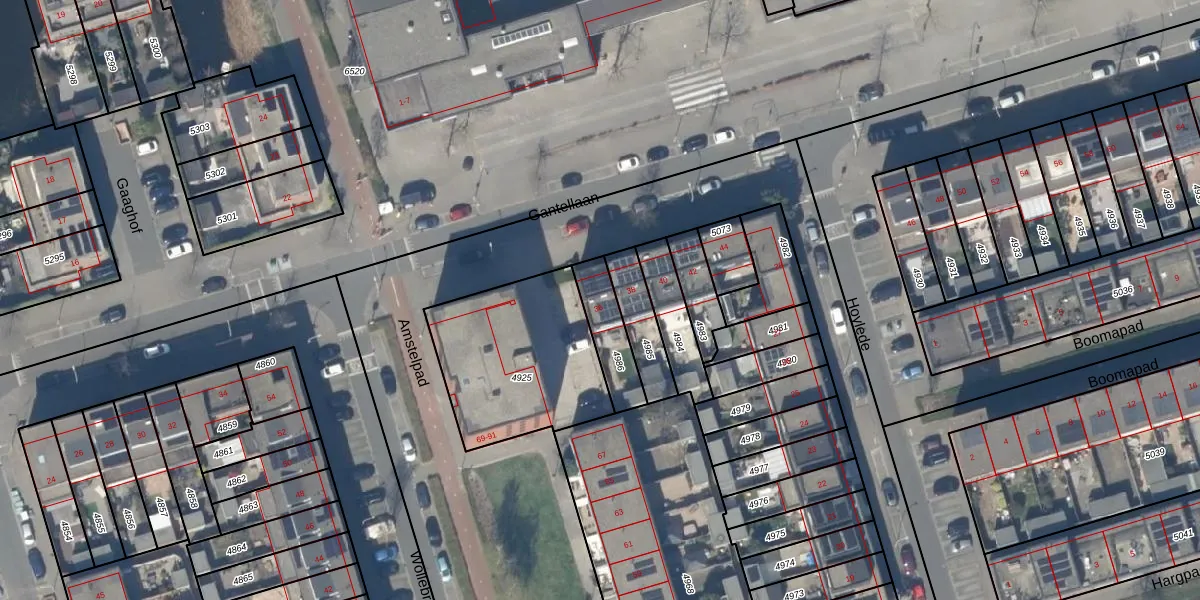 Gantellaan 36 is gelegen op kadastraal perceel PAK00B4986. Deze kadastrale aanduiding is uniek en wordt gebruikt door het Kadaster om eigendomsrechten en andere zakelijke rechten vast te leggen. Het perceel maakt onderdeel uit van de kadastrale gemeente Pijnacker.
