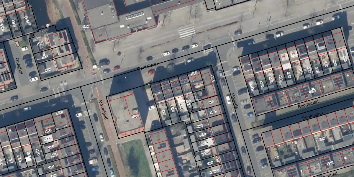 Gantellaan 40 is gelegen op kadastraal perceel PAK00B4984. Deze kadastrale aanduiding is uniek en wordt gebruikt door het Kadaster om eigendomsrechten en andere zakelijke rechten vast te leggen. Het perceel maakt onderdeel uit van de kadastrale gemeente Pijnacker.