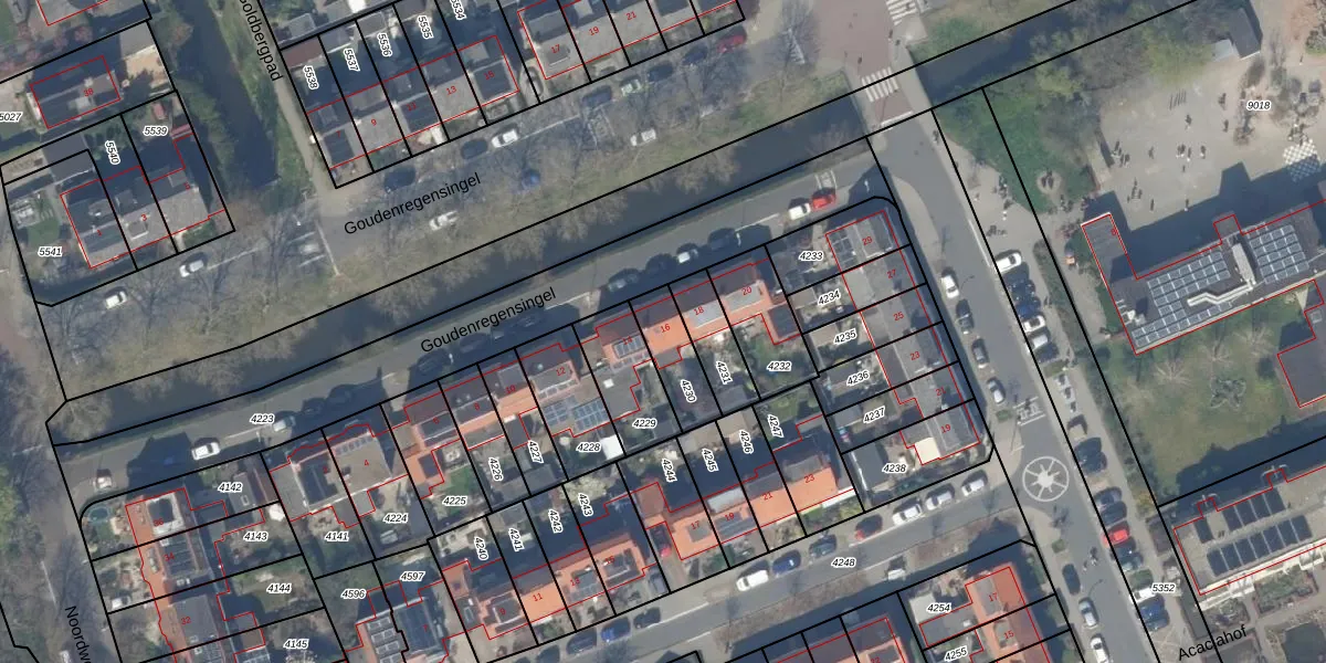 Goudenregensingel 16 is gelegen op kadastraal perceel PAK00C4230. Deze kadastrale aanduiding is uniek en wordt gebruikt door het Kadaster om eigendomsrechten en andere zakelijke rechten vast te leggen. Het perceel maakt onderdeel uit van de kadastrale gemeente Pijnacker.