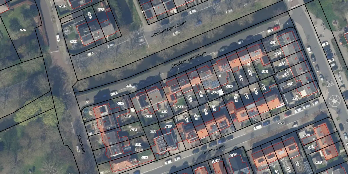 Gebruik de zoekbalk of klik op een perceel voor informatie over de adressen binnen dit perceel.