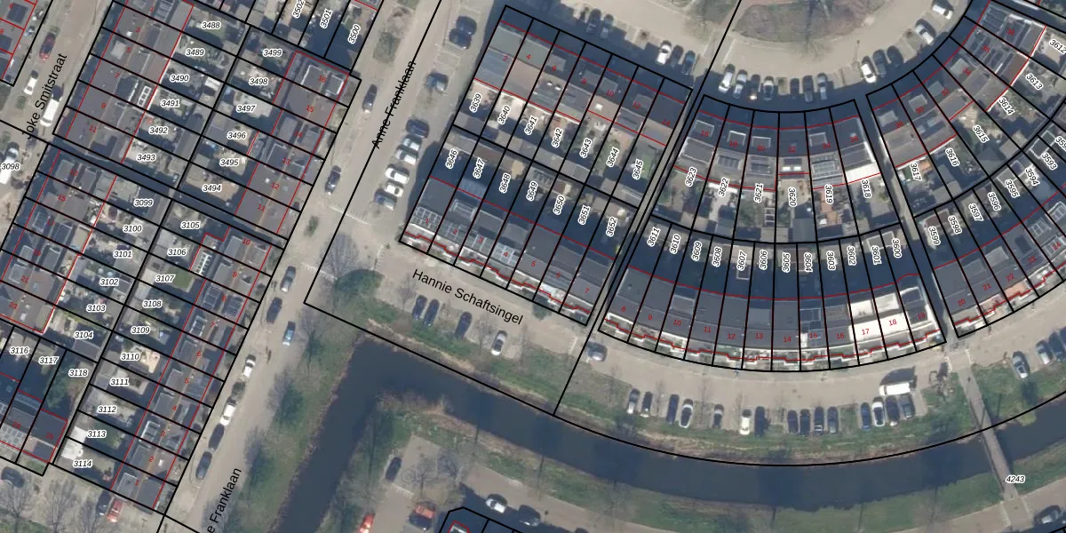 Gebruik de zoekbalk of klik op een perceel voor informatie over de adressen binnen dit perceel.