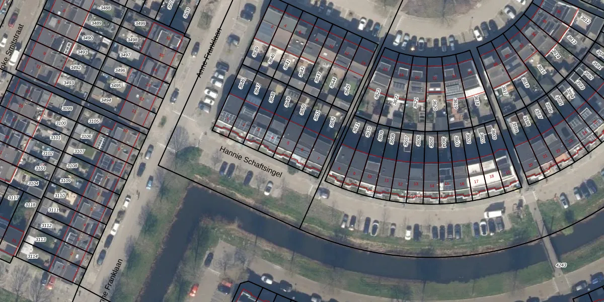 Gebruik de zoekbalk of klik op een perceel voor informatie over de adressen binnen dit perceel.