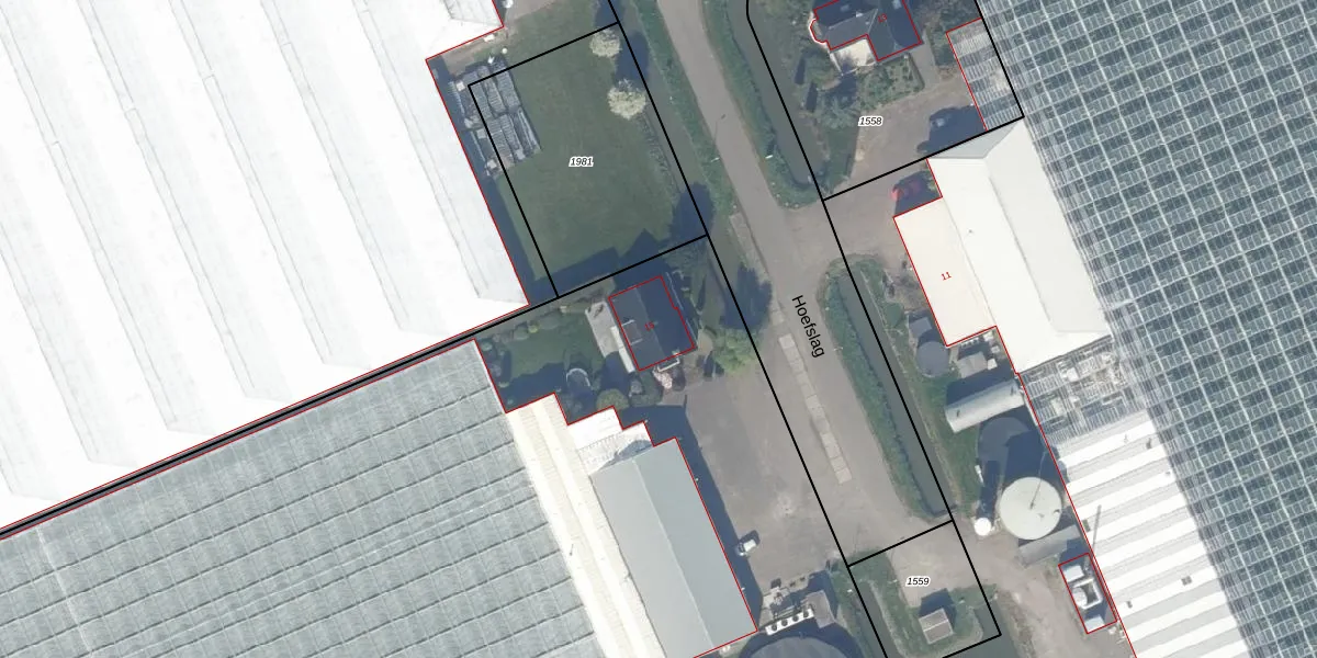 Het perceel waarop Hoefslag 15 staat heeft een oppervlakte van 2,1 ha. Dit is een zeer groot perceel. De perceeloppervlakte wordt geregistreerd door het Kadaster. Gedetailleerde informatie over de maten van dit perceel kunt u vinden in het rapport Kadastrale kaart met maatvoering van Hoefslag 15.