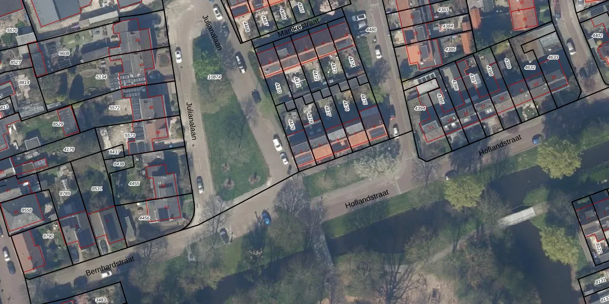 Hoflandstraat 1 is gelegen op kadastraal perceel PAK00C4479. Deze kadastrale aanduiding is uniek en wordt gebruikt door het Kadaster om eigendomsrechten en andere zakelijke rechten vast te leggen. Het perceel maakt onderdeel uit van de kadastrale gemeente Pijnacker.