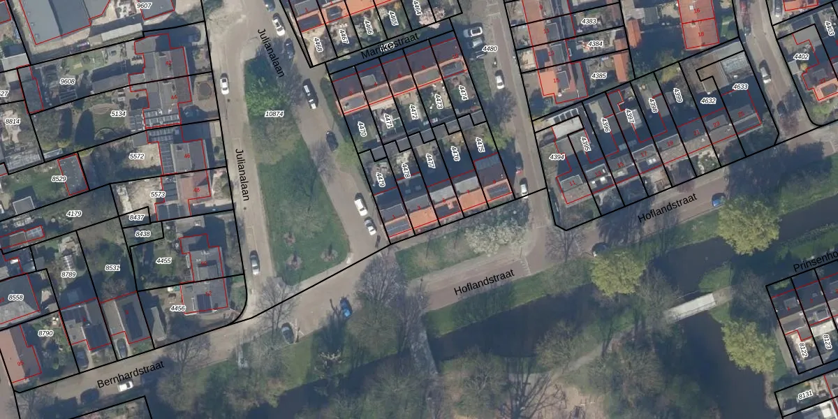 Gebruik de zoekbalk of klik op een perceel voor informatie over de adressen binnen dit perceel.