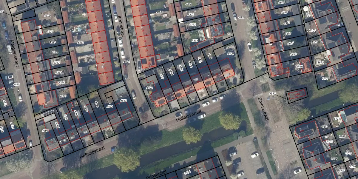 Gebruik de zoekbalk of klik op een perceel voor informatie over de adressen binnen dit perceel.