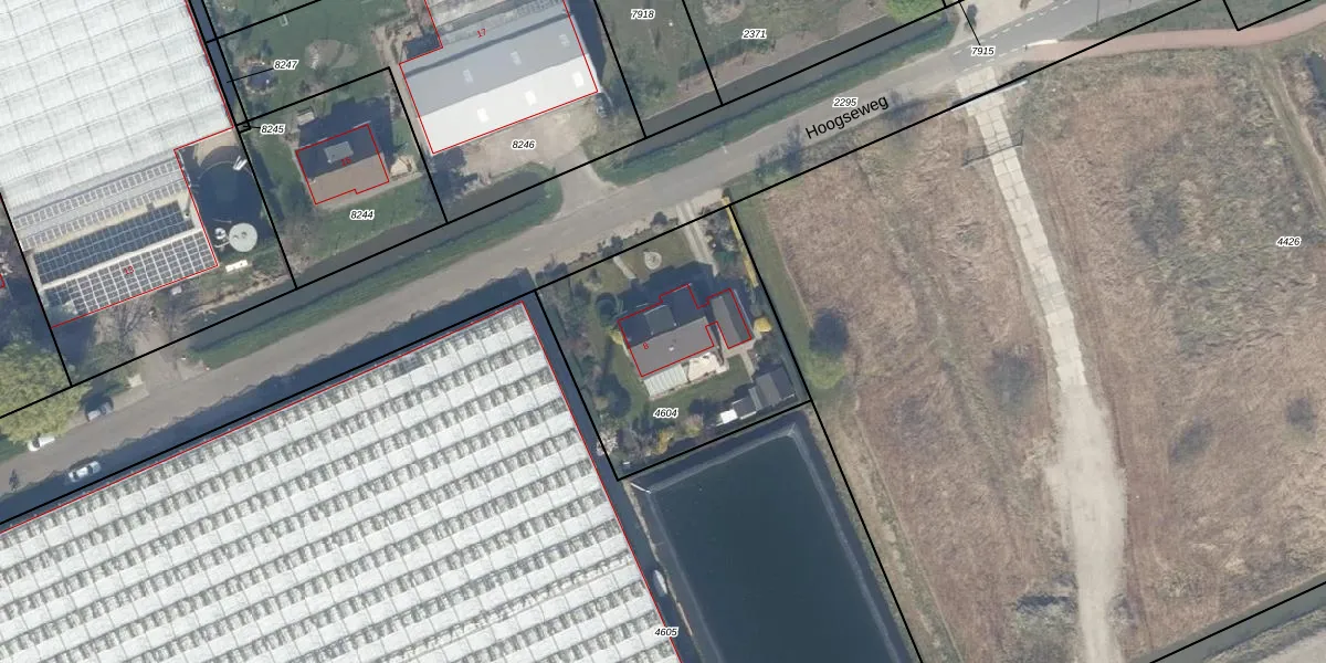 Hoogseweg 8 is gelegen op kadastraal perceel PAK00B4604. Deze kadastrale aanduiding is uniek en wordt gebruikt door het Kadaster om eigendomsrechten en andere zakelijke rechten vast te leggen. Het perceel maakt onderdeel uit van de kadastrale gemeente Pijnacker.