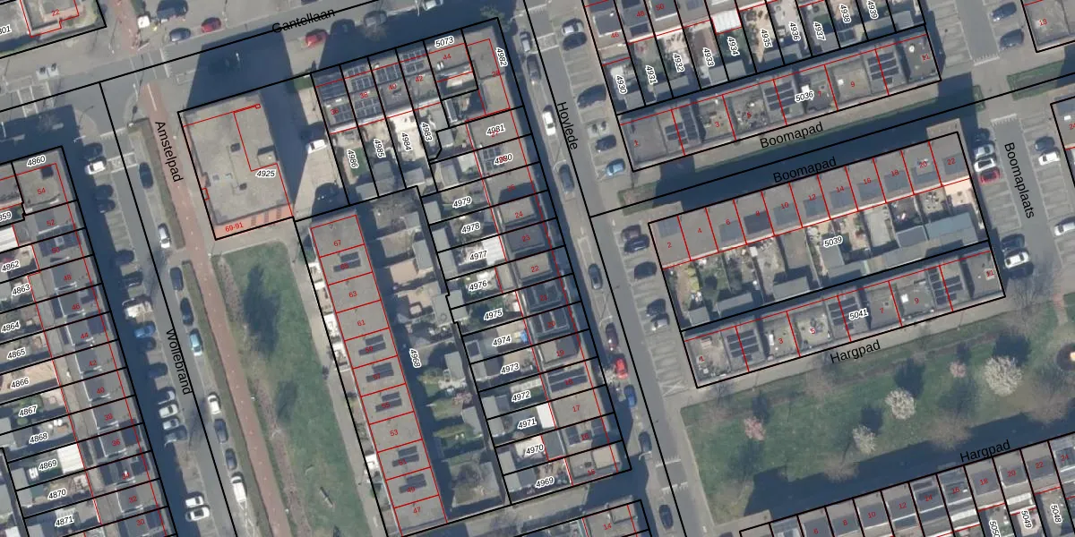 Het adres is gelegen op perceel 4976 in de sectie B en de kadastrale gemeente Pijnacker. De kadastrale aanduiding is aldus PAK00-B-4976. Het perceel is 128 m² groot. Dat is kleiner dan de gemiddelde perceeloppervlakte in Pijnacker, dat op 1796,52 m² ligt. Het grootste perceel in de kadastrale gemeente is 20,5 ha. Het kleinste perceel heeft een oppervlakte van 0 m². Er zijn geen andere adressen aanwezig op het perceel. De laatste wijziging in het de Basisregistratie Kadaster (BRK) was op 16-12-2003.