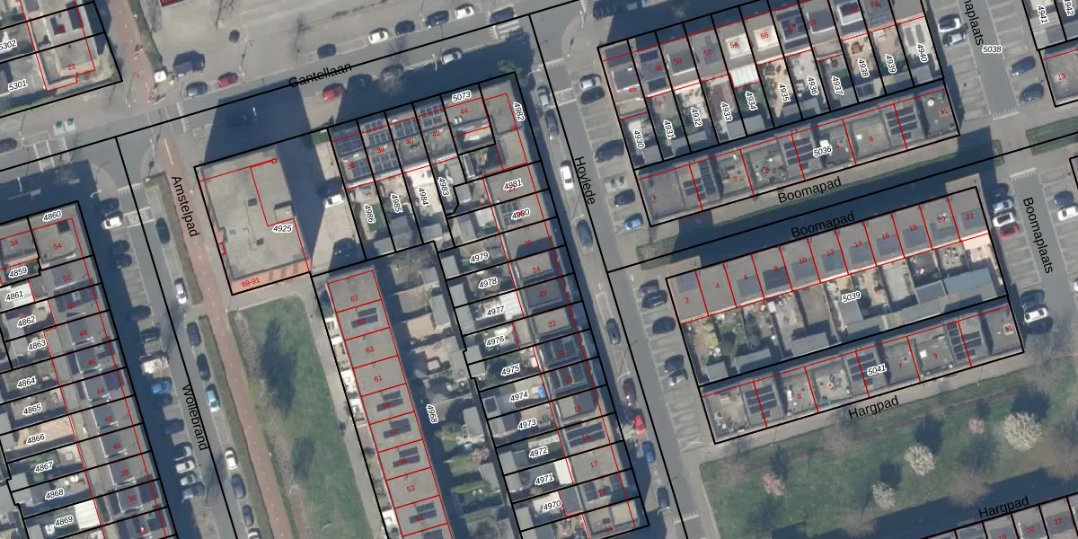 Het adres is gelegen op perceel 4978 in de sectie B en de kadastrale gemeente Pijnacker. De kadastrale aanduiding is aldus PAK00-B-4978. Het perceel is 126 m² groot. Dat is kleiner dan de gemiddelde perceeloppervlakte in Pijnacker, dat op 1796,52 m² ligt. Het grootste perceel in de kadastrale gemeente is 20,5 ha. Het kleinste perceel heeft een oppervlakte van 0 m². Er zijn geen andere adressen aanwezig op het perceel. In de Basisregistratie Kadaster (BRK) werden de grenzen van het perceel geregistreerd op 16-12-2003.
