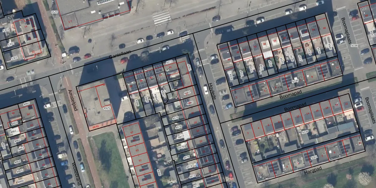 Het adres is gelegen op perceel 4981 in de sectie B en de kadastrale gemeente Pijnacker. De kadastrale aanduiding is aldus PAK00-B-4981. Het perceel is 95 m² groot. Dat is kleiner dan de gemiddelde perceeloppervlakte in Pijnacker, dat op 1796,52 m² ligt. Het grootste perceel in de kadastrale gemeente is 20,5 ha. Het kleinste perceel heeft een oppervlakte van 0 m². Op het perceel bevinden zich geen andere adressen. De huidige grenzen van het perceel zijn digitaal in de Basisregistratie Kadaster (BRK) geregistreerd op 16-12-2003.